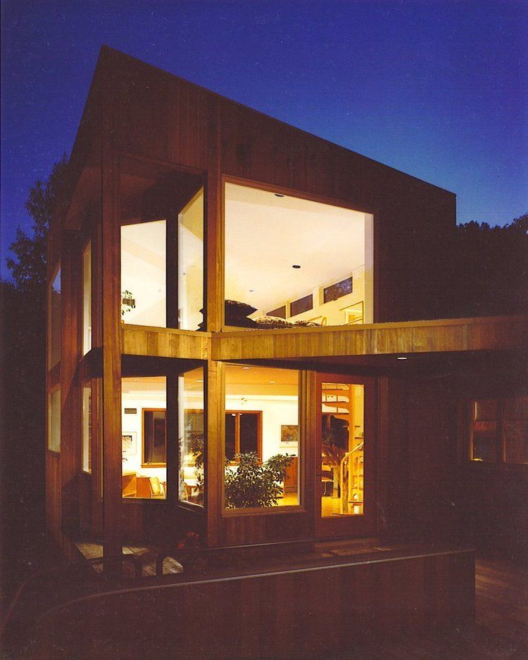 Several phases of renovations transformed this once concrete block ranch from a traditional rectangular box to a soaring, contemporary redwood home.